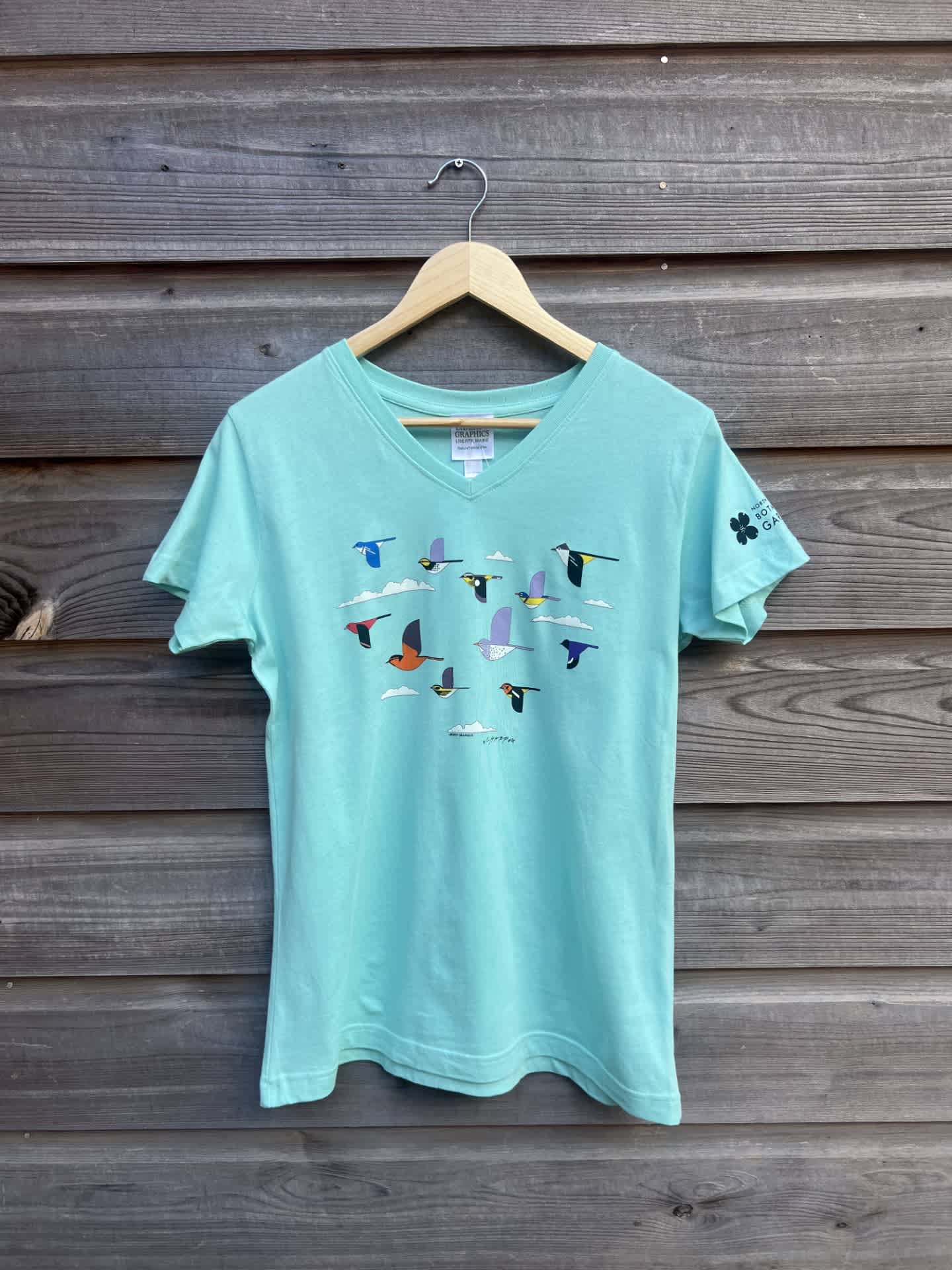 Liberty Graphics presents Charley Harper’s Flight of Fancy. 100% cotton heavyweight Adult crew neck t-shirt. Printed using 100% water-based ink for your comfort and our environment. NCBG logo on the left sleeve.