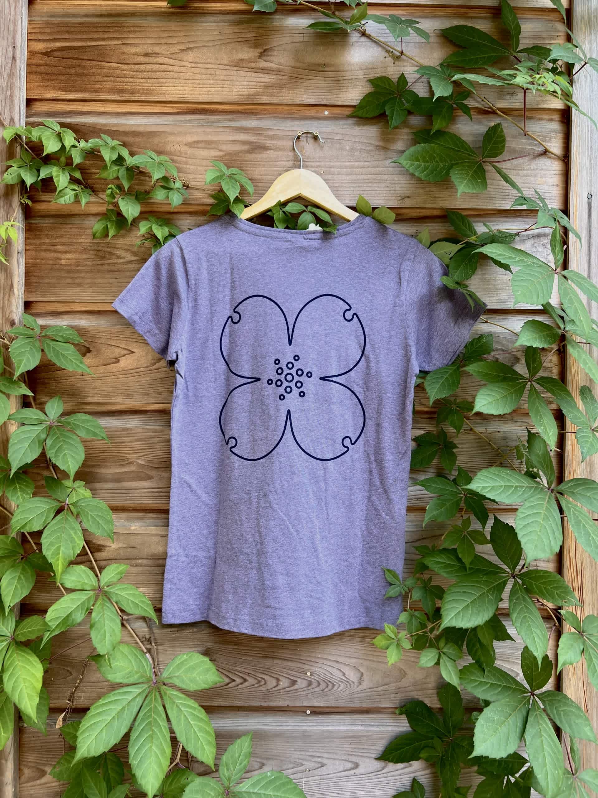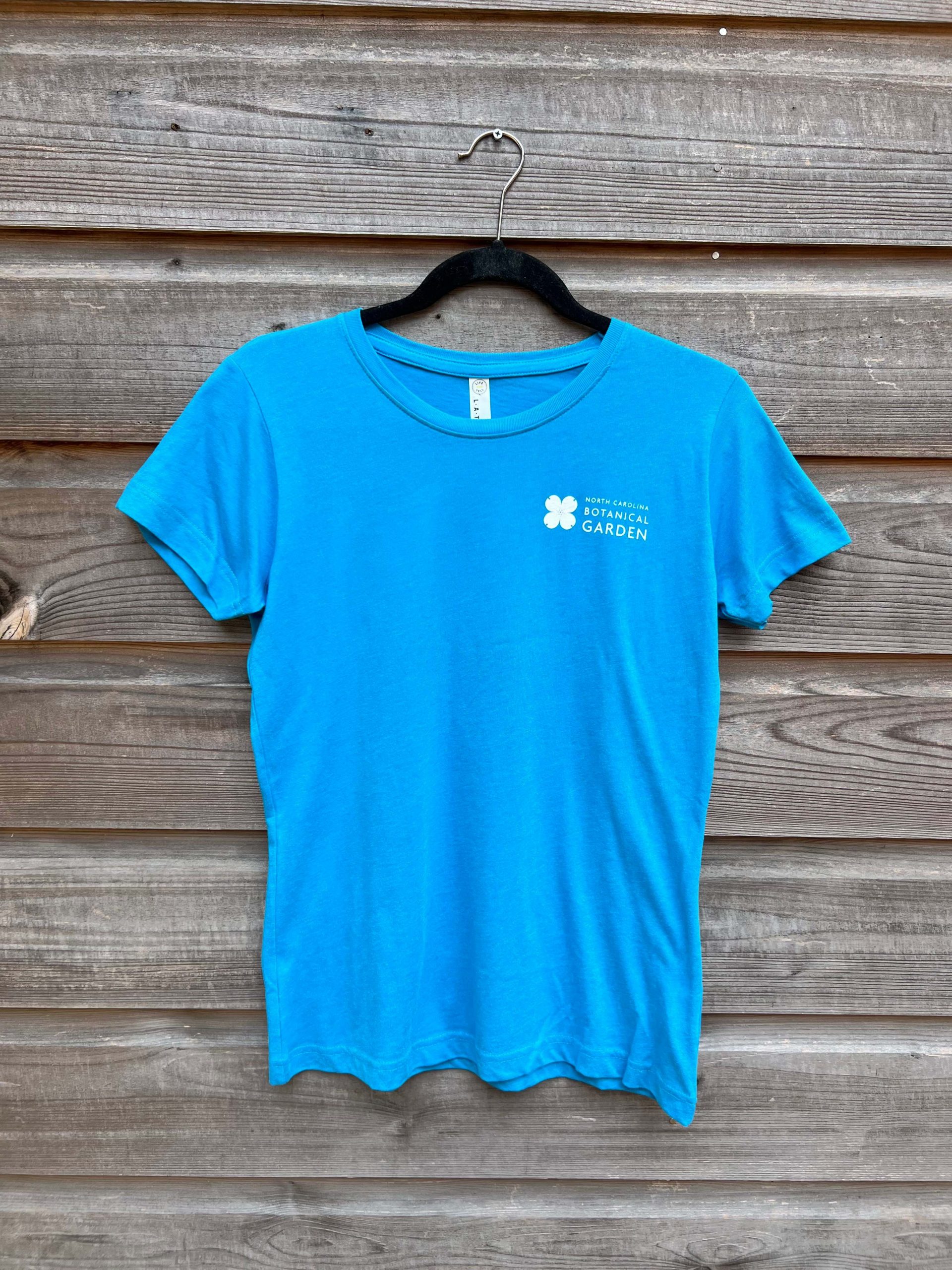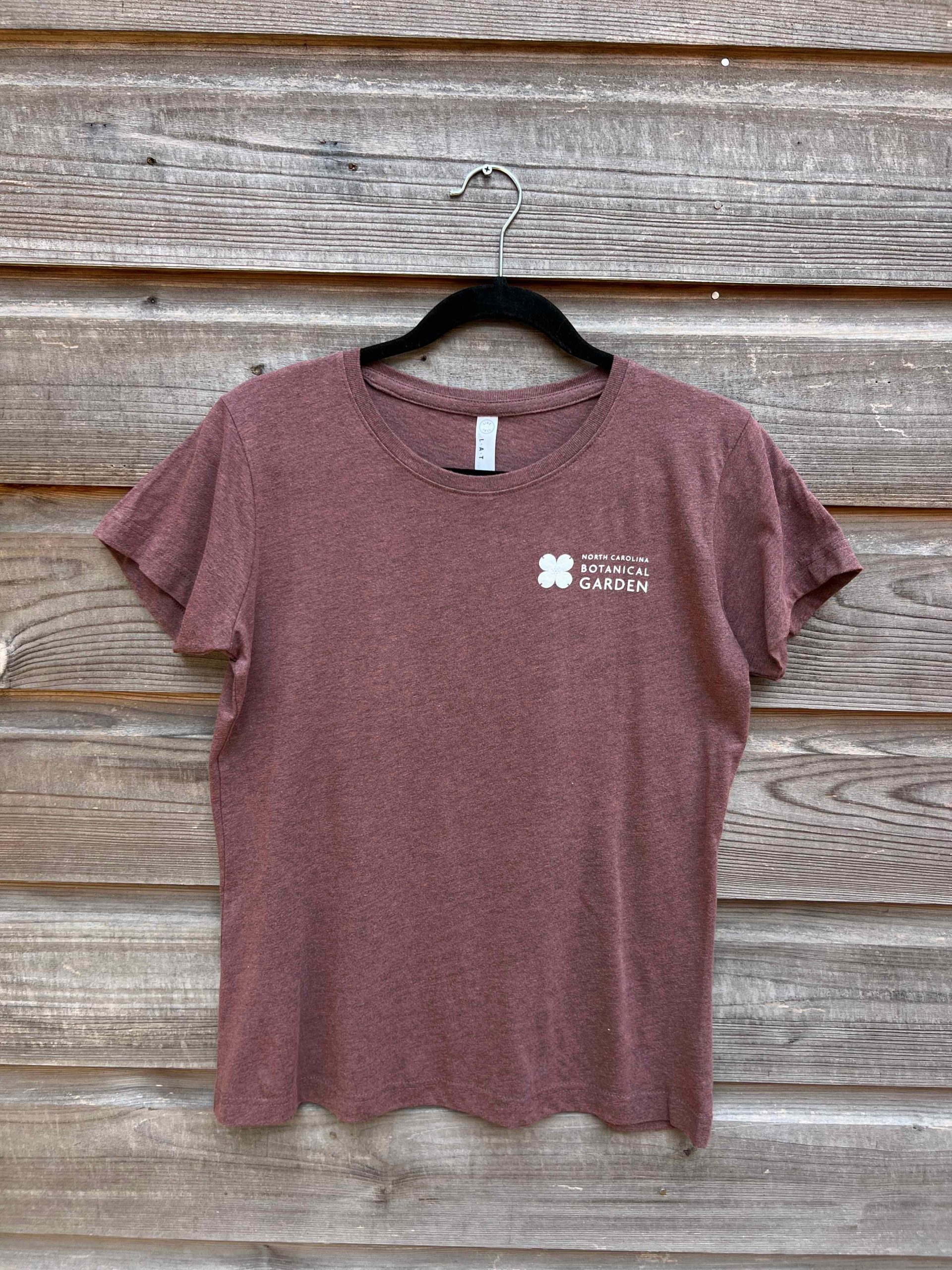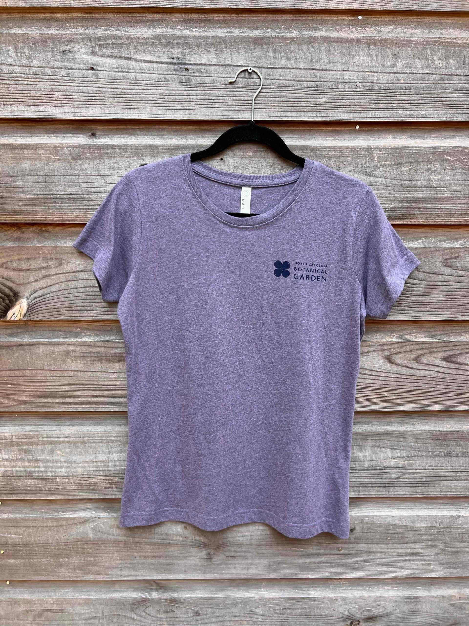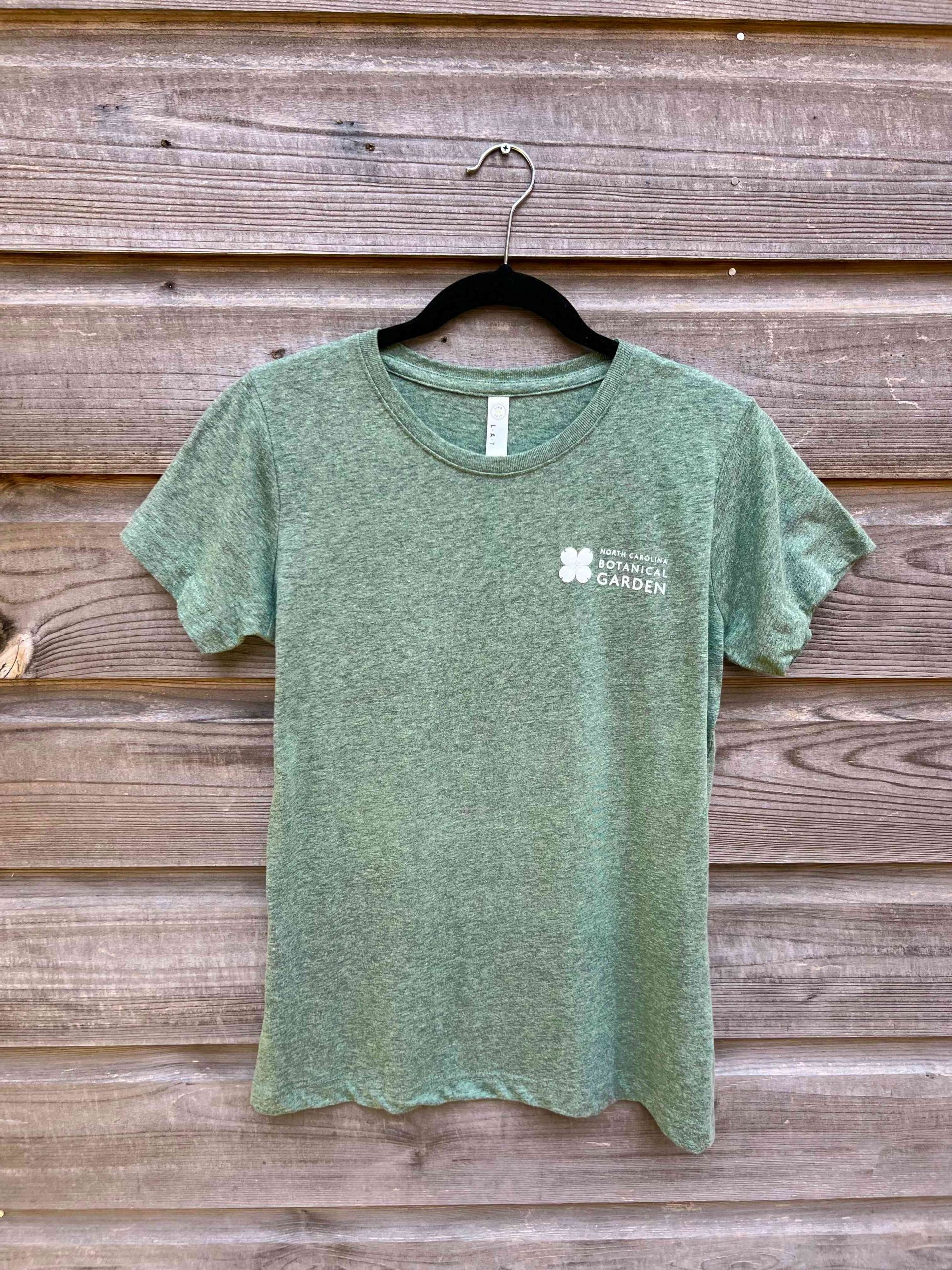 Pocket NCBG logo on front and Dogwood outline on back. We suggest you size up from your size in traditional unisex t-shirt size, as this is a Ladies cut t-shirt.